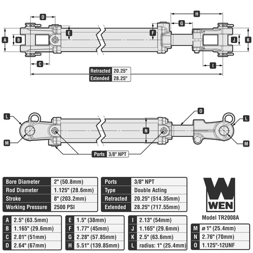 View full detailsDouble-acting steel-welded ASAE-certified design creates pressure up to 2500 PSI Features a 2-inch bore, a 8-inch stroke, and a 1.125-inch rod di...